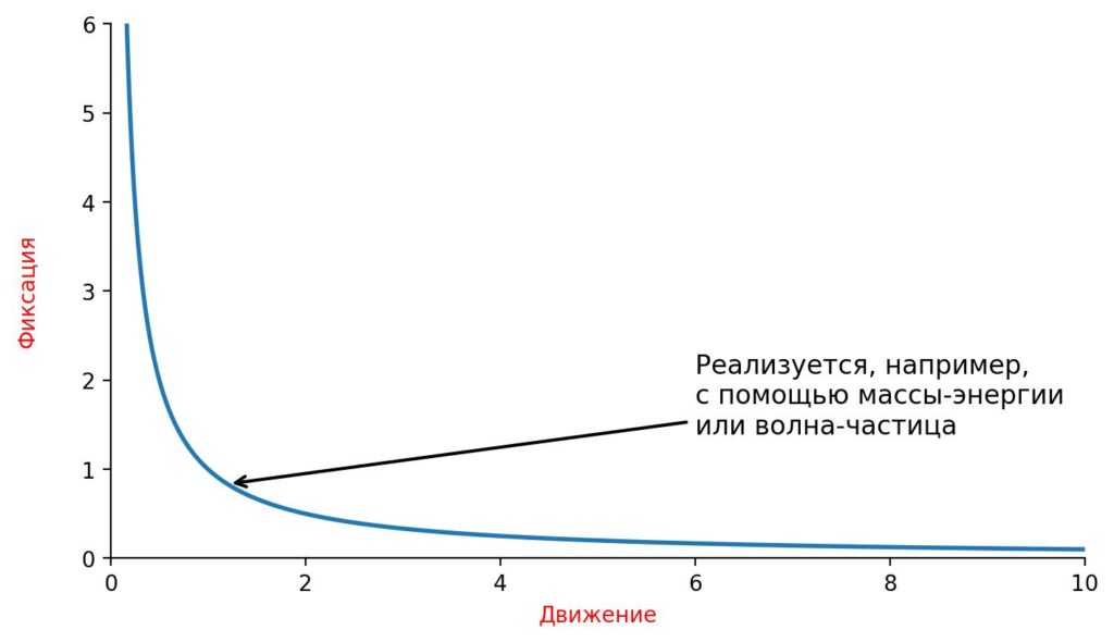 Другими словами, движение ↔ фиксация — это онтологическая двойственность, которая задаёт фундаментальную рамку различимости. Масса ↔ энергия — лишь один из её частных физических случаев. Но важно понимать: и масса, и энергия никогда не достигают пределов «абсолютной фиксации» или «абсолютного движения». Они существуют как состояния в диапазоне между этими предельными полюсами, приближаясь к ним, но никогда не сливаясь с ними.